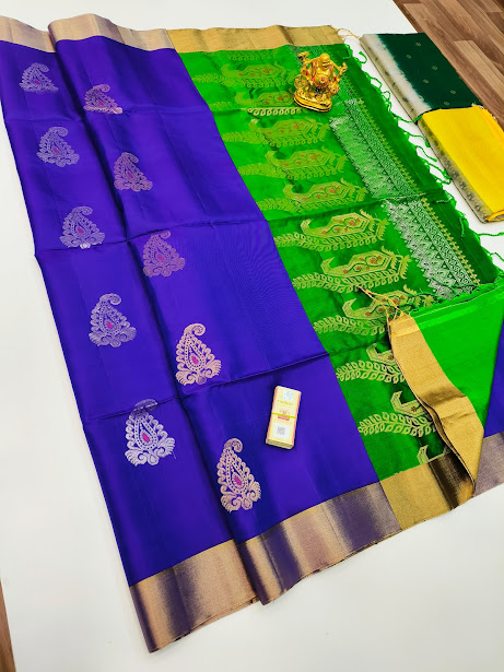 Mango Design Pure Soft Silk Saree Indigo Blue Color