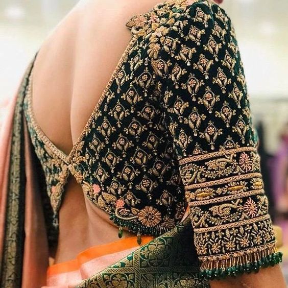 Specification: Modern Embroidery and Pearls & Stone Work Bridal Blouses Bottle Green Color