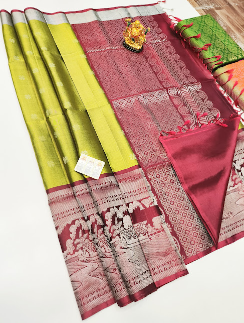 Nature Design Pure Soft Silk Saree Lemon Green Color w/ Blouse
