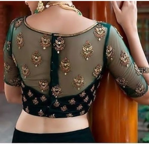 Specification: Netted & Thread Work Bridal Blouses Dark Green Color