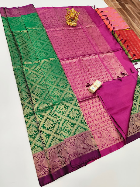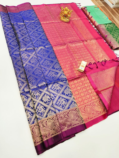 Specification: New Annam and Elephant Design Pure Soft Silks Saree Green, Ink Blue Color w/ Blouse