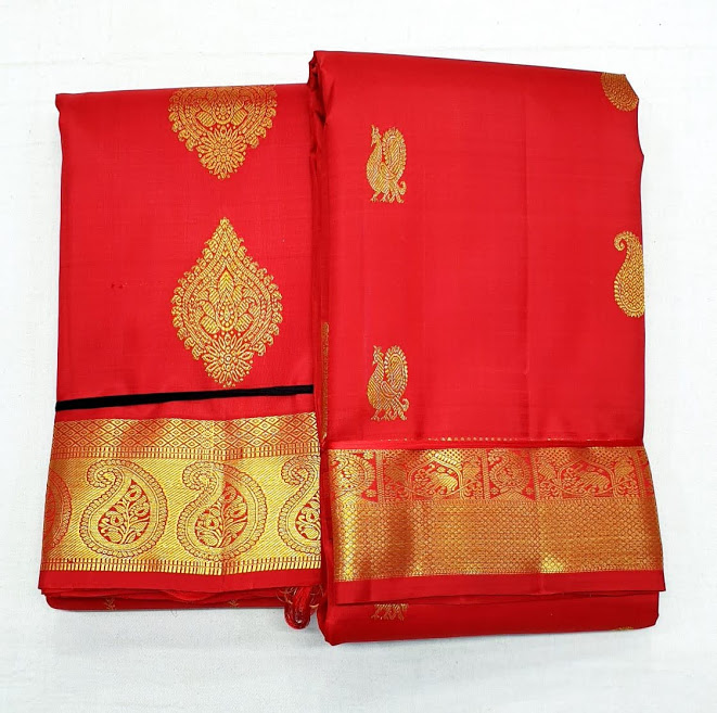 Whats App for Latest Sarees & DesignsSpecification: New Annam and Mango Design Two Red Color Kanjivaram Trendy Silk Saree