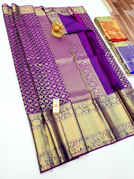 New Annam Design Kanjivaram Pure Wedding Silk Saree Purple Color w/ Blouse