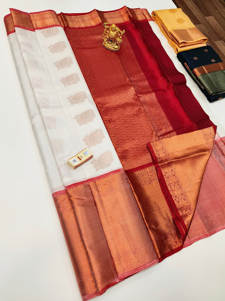 New Big Border Design Pure Soft Silk Saree White and Red Color w/ Blouse