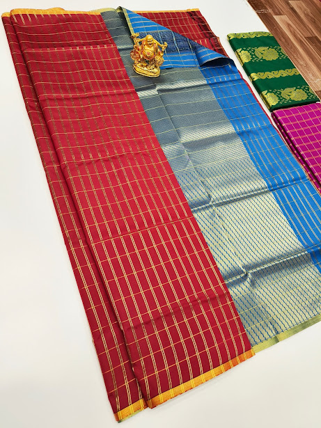 New Box Design Plain Mphoss Saree Art Silk Red Color w/ Blouse
