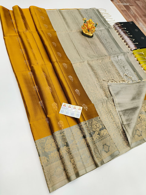 New Color and Design Pure Soft Silk Saree Mustard Color w/ Blouse