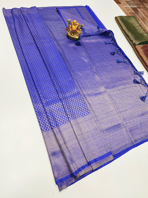 New Design Butta Mphoss Saree Indigo Blue Color w/ Blouse