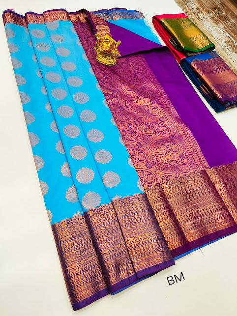 New Design Butta Mphoss Saree Rama Blue Color w/ Blouse