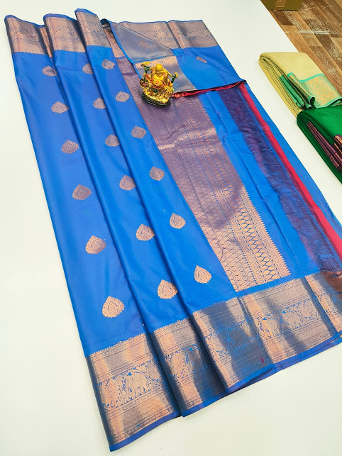 New Design High Fancy Kanjivaram Silk Saree Mix Blue Color w/ Blouse