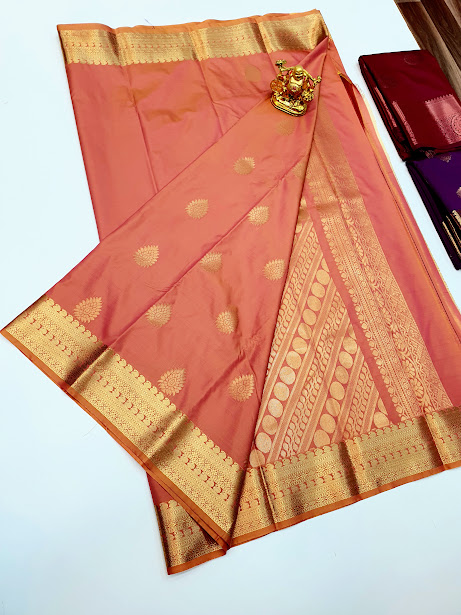 New Design High Fancy Kanjivaram Silk Saree Mix Orange Color w/ Blouse
