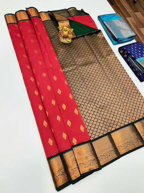 New Design High Fancy Kanjivaram Silk Saree Mix Red Color w/ Blouse