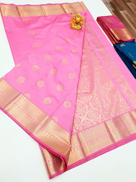 New Design High Fancy Kanjivaram Silk Sarees Mix Rose Color