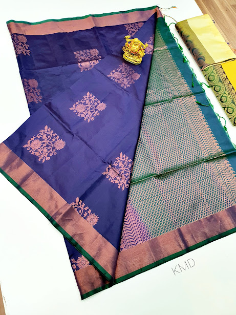New Design K.M.D Soft 75% Pure Silk Saree Ink Blue Color w/ Blouse
