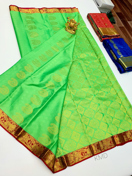 New Design K.M.D Soft 75% Pure Silk Saree Light Green Color