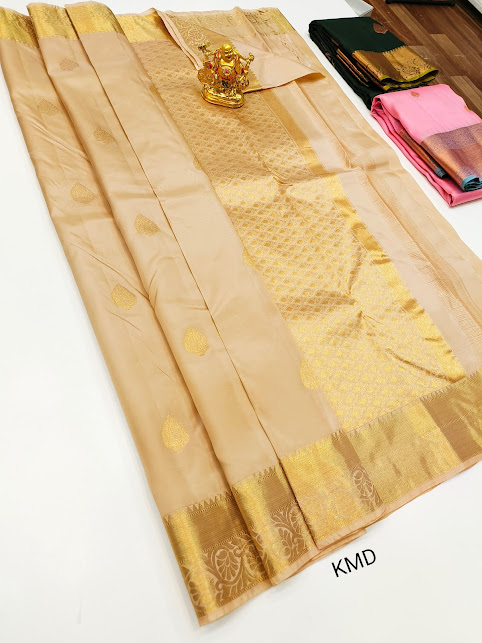 New Design K.M.D Soft 75% Pure Silk Saree Off White Color w/ Blouse