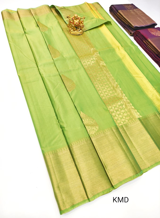 New Design K.M.D Soft 75% Pure Silk Saree Pista Green Color w/ Blouse