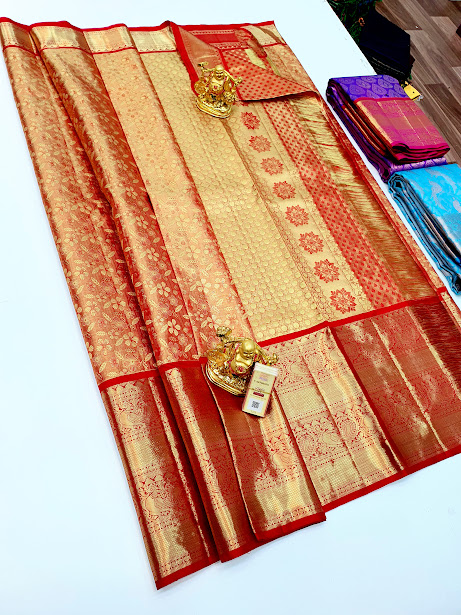 New Design Kanjivaram Pure Wedding Silk Saree Apple Red Color w/ Blouse