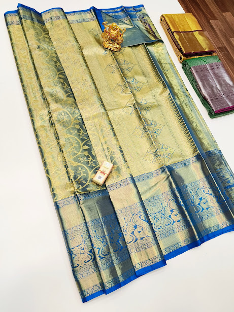 New Design Kanjivaram Pure Wedding Silk Saree Blue Color w/ Blouse
