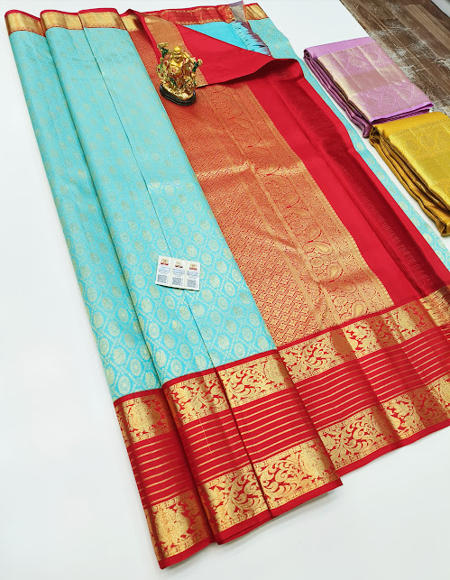 New Design Kanjivaram Pure Wedding Silk Saree Light Blue Color w/ Blouse