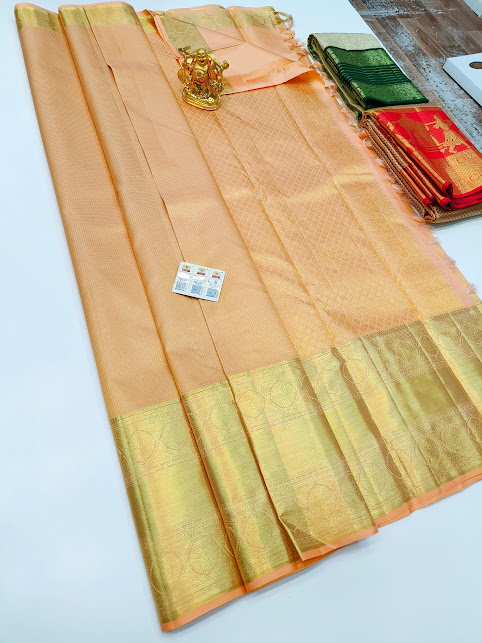 New Design Kanjivaram Pure Wedding Silk Saree Peach Color w/ Blouse