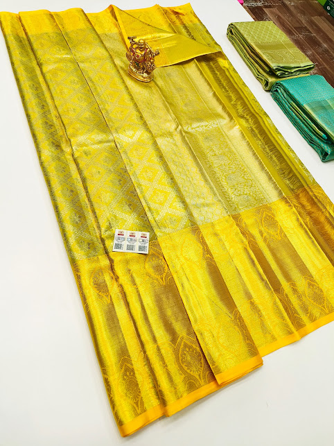 New Design Kanjivaram Pure Wedding Silk Saree Pineapple Yellow Color w/ Blouse