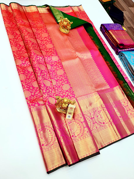 New Design Kanjivaram Pure Wedding Silk Saree Pink Color w/ Blouse