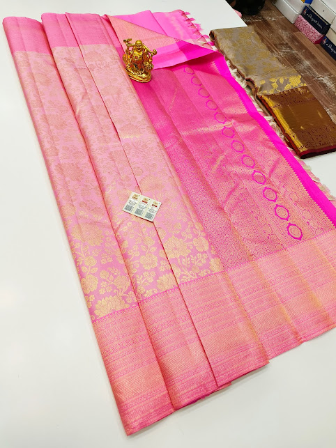 New Design Kanjivaram Pure Wedding Silk Saree Rose Color w/ Blouse