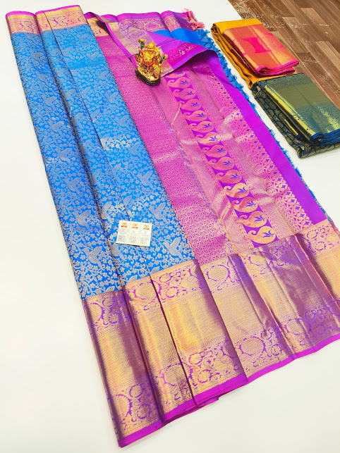 New Design Kanjivaram Pure Wedding Silk Saree Sky Blue Color w/ Blouse
