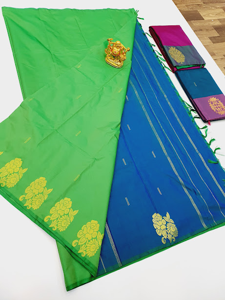 New Design Kanjivaram Semi Silk Saree Pista Green Color w/ Blouse