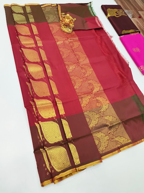 New Design Plain Mphoss Saree Art Silk Double(Green, Red) Color w/ Blouse
