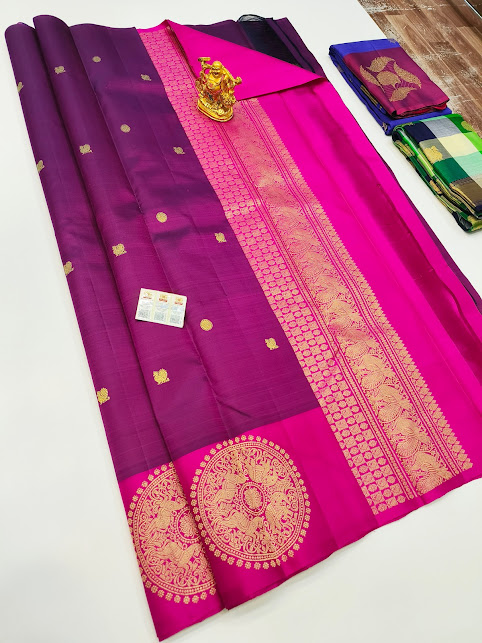 New Design Pure Kanjivaram Fancy Silk Saree Double Shade (Purple, Pink) Color w/ Blouse