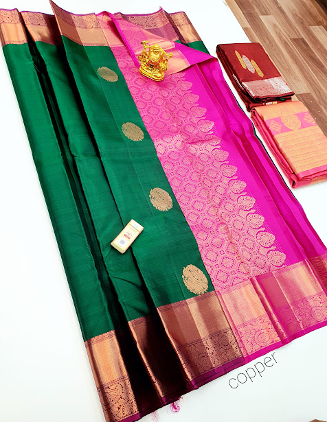 New Design Pure Kanjivaram Fancy Silk Saree Green Color w/ Blouse