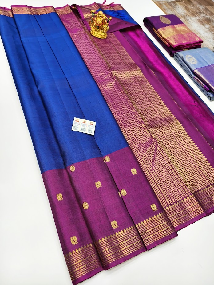 New Design Pure Kanjivaram Fancy Silk Saree Ink Blue Color w/ Blouse