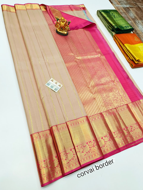 New Design Pure Kanjivaram Fancy Silk Saree Light Brown Color w/ Blouse