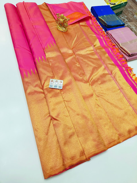 New Design Pure Kanjivaram Fancy Silk Saree Pink and Gold Color w/ Blouse