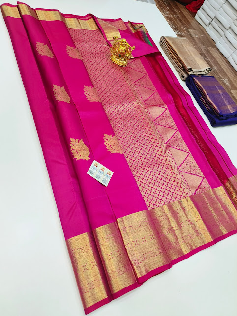 New Design Pure Kanjivaram Fancy Silk Saree Pink Color w/ Blouse
