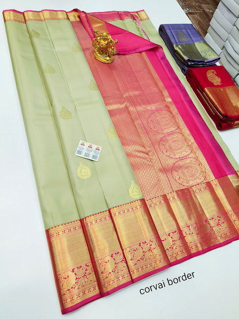 New Design Pure Kanjivaram Fancy Silk Saree Pista Green Color w/ Blouse