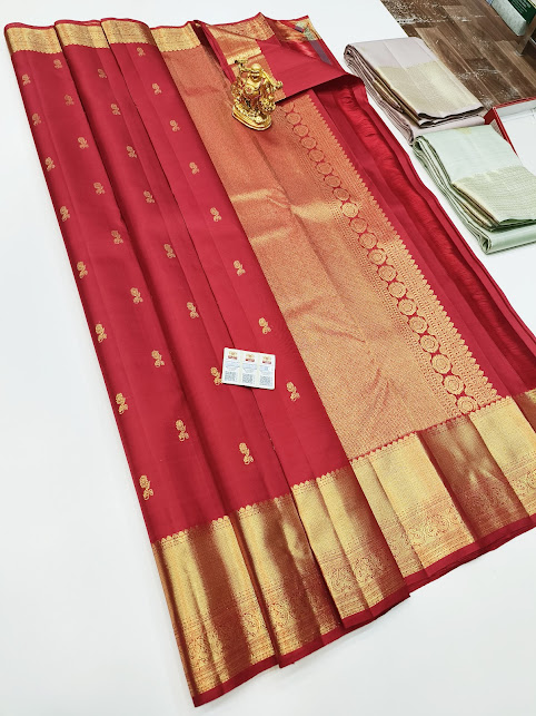 New Design Pure Kanjivaram Fancy Silk Saree Red Color w/ Blouse