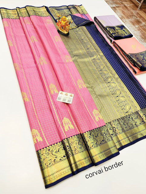 New Design Pure Kanjivaram Fancy Silk Saree Rose Color w/ Blouse