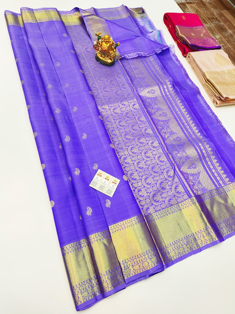 New Design Pure Kanjivaram Fancy Silk Saree Violet Color w/ Blouse