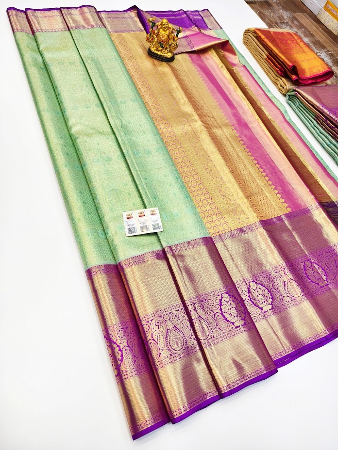New Design Pure Kanjivaram Silk Saree Pista Green Color w/ Blouse