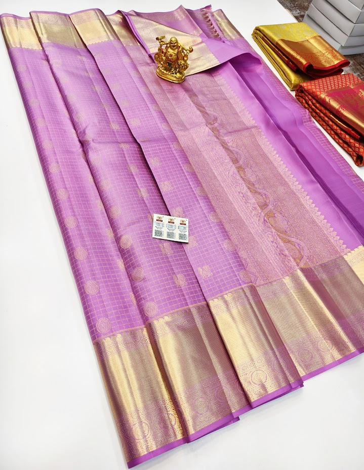 New Design Pure Kanjivaram Silk Saree Violet Color w/ Blouse