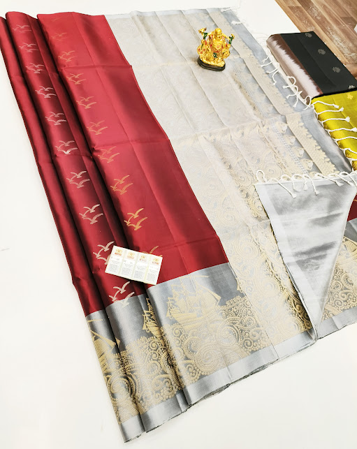 New Design Pure Soft Silk Saree Apple Red Color w/ Blouse