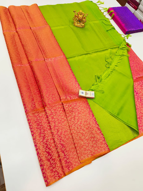New Design Pure Soft Silk Saree Orange Color w/ Blouse