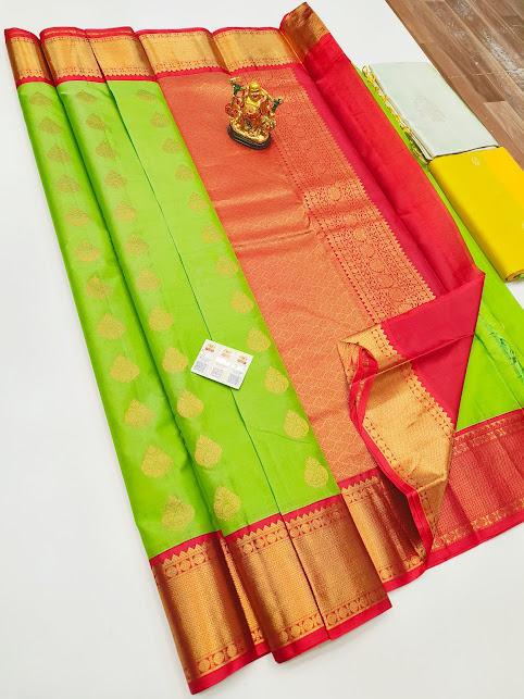 New Design Pure Soft Silk Saree Parrot Green Color w/ Blouse