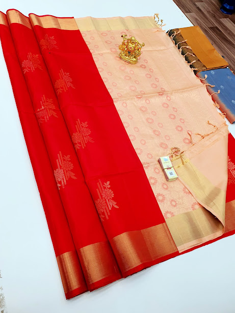 New Design Pure Soft Silk Saree Red Color w/ Blouse
