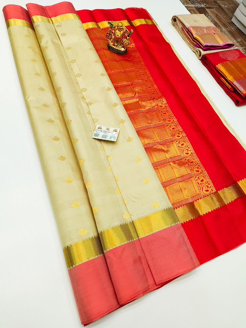 New Design Pure Soft Silks Saree Cream Color w/ Blouse