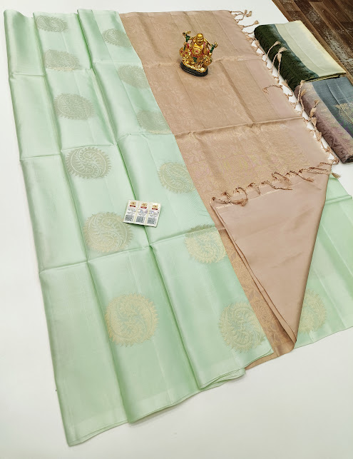 New Design Pure Soft Silks Saree Light Pista Color w/ Blouse