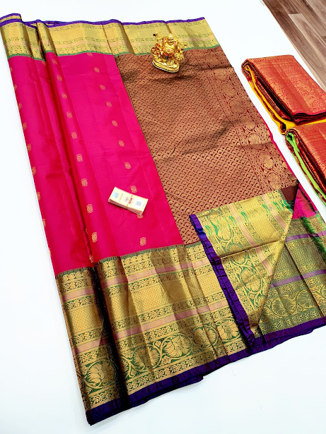 New Design Pure Soft Silks Saree Mango Yellow, Rose Color