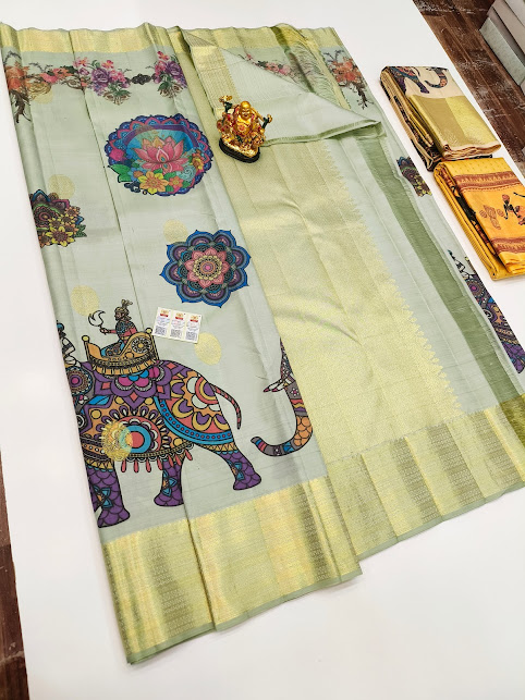 New Elephant Design Kanjivaram Pure Wedding Silk Saree Light Pista Color w/ Blouse